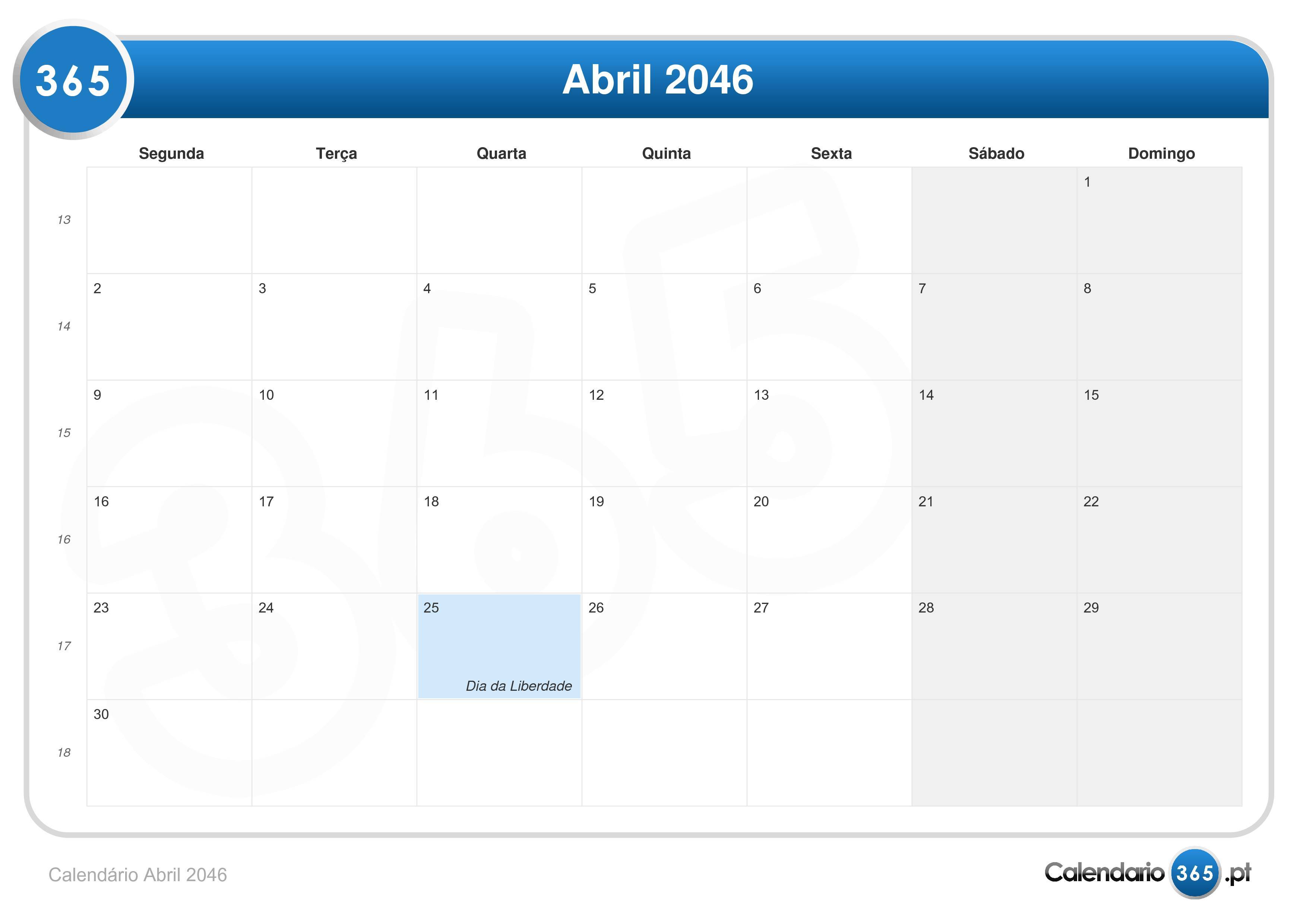 Calendário abril 2046