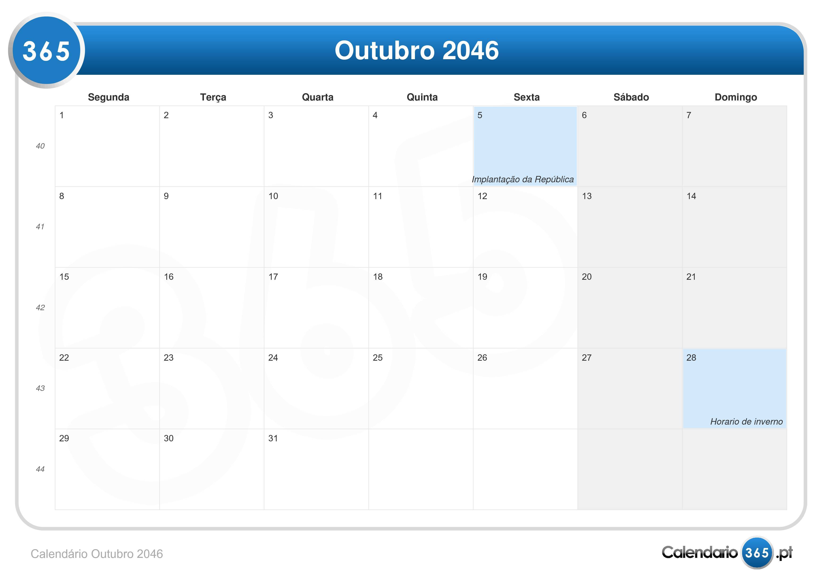 Calendário outubro 2046 (Formato de paisagem)Ir para Calendário 2046.