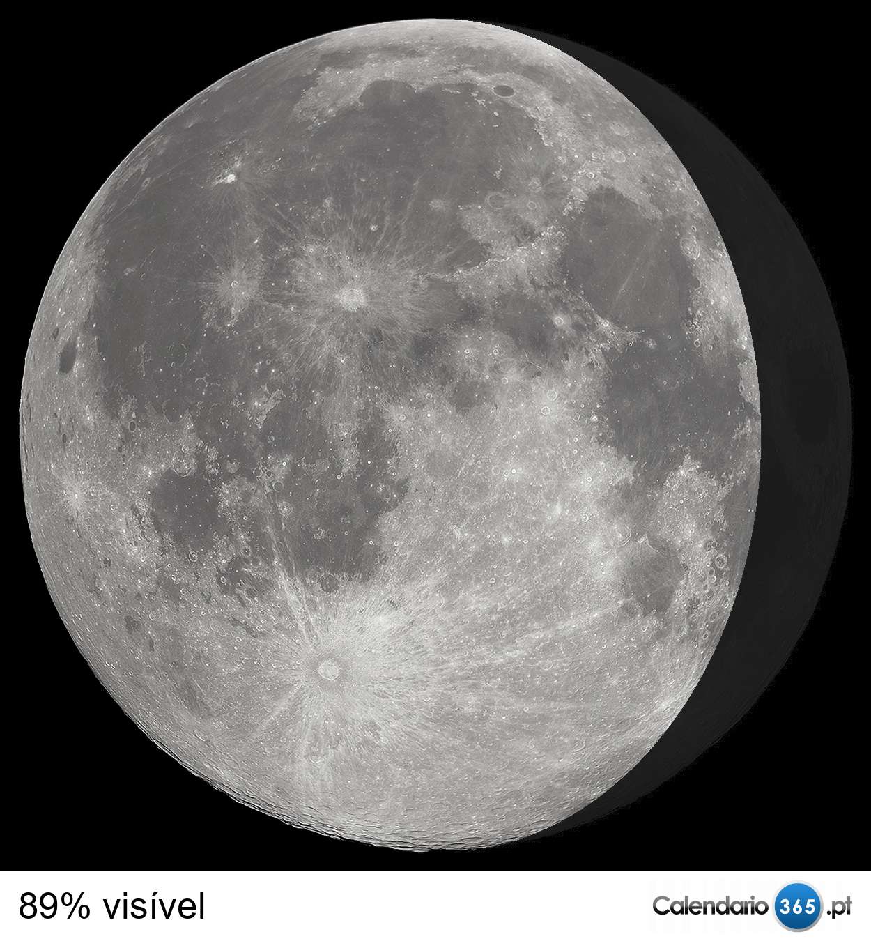 Consulte aqui a fase atual da lua. Por debaixo da imagem uma indicação da percentagem de visibilidade da lua.